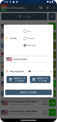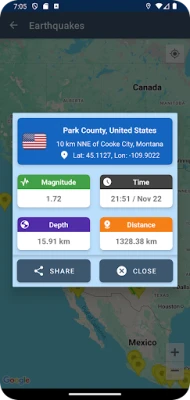- Real-Time Alerts: Get instant notifications for earthquakes as they occur worldwide. - Interactive Maps: Visualize earthquake locations on detailed maps for better understanding. - Detailed Information: Access in-depth data including magnitude, depth, location, and time. - Customizable Filters: Set your preferred magnitude thresholds and regions of interest. - Distance Calculator: Measure your distance from earthquake epicenters.