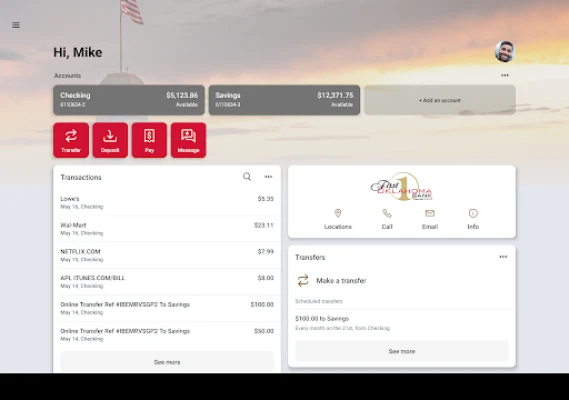 To use the FirstLink app, you must be enrolled as a First Oklahoma Bank Internet Banking user. If you currently use our Internet Banking, simply download the app, launch it, and login with the same Internet Banking credentials.