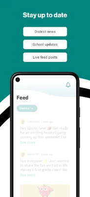 DISTRICT UPDATES In the Live Feed is where you'll find updates from the administration about what's going on in the district right now. Whether that's celebrating a student's success, or reminding you about an upcoming deadline.