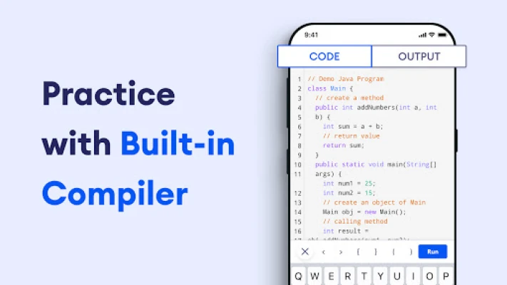 Learn Java is a free Android app that makes it easy to learn Java and try out what you have learned in real-time. You can use the app to follow through Java tutorials step-by-step, try out Java programs in each lesson using the in-built online Java compiler, take quizzes and more.