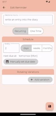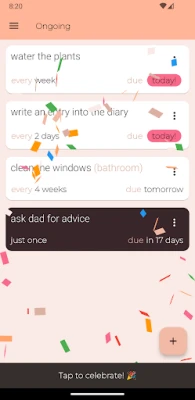 Do you need a reminder to water the plants or call grandma? Ongoing will remind you when the task is due – and reset the timer only when you have done the task!